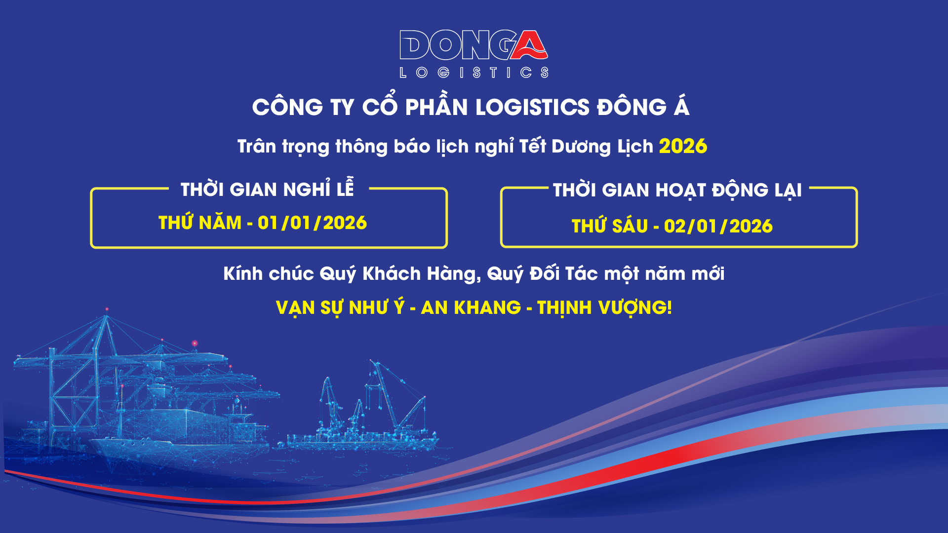 Công ty Cổ phần Logistics Đông Á trân trọng kính gửi Quý Khách Hàng, Quý Đối Tác lịch nghỉ Tết Dương Lịch 2026 như sau: